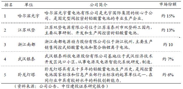 通信用蓄電池市場(chǎng)的主要競(jìng)爭(zhēng)對(duì)手如下表所示: