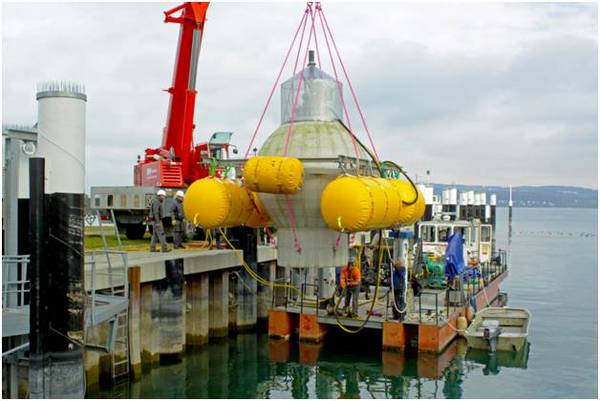 為了驗(yàn)證該技術(shù)的可行度和搜集數(shù)據(jù),研究人員建造了一個(gè)1:10比例的縮小版進(jìn)行探索性實(shí)驗(yàn)。這個(gè)縮小版空心球被放在了博登湖水下100米的湖底,進(jìn)行了一次為期四周的實(shí)驗(yàn)。該實(shí)驗(yàn)于本周結(jié)束,整個(gè)球體被打撈出來(lái)。由于該探測(cè)性實(shí)驗(yàn)的成功,研究人員們表示他們將會(huì)著手進(jìn)行一次為期更長(zhǎng),體積更大的實(shí)驗(yàn)。