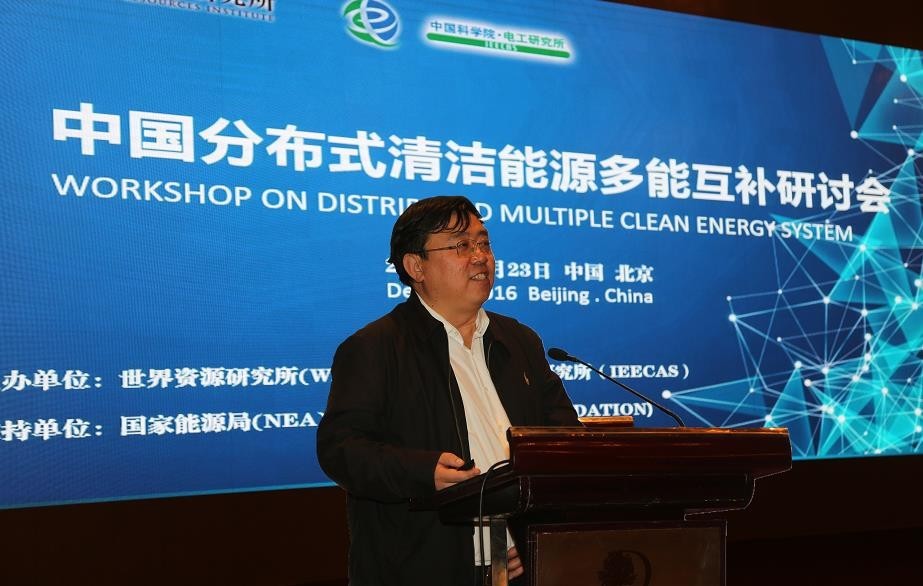 中科院電工所在多能互補(bǔ)領(lǐng)域的研究仍將繼續(xù)。2016年底和世界資源研究所(WRI)共同舉辦大規(guī)?!爸袊?guó)分布式清潔能源多能互補(bǔ)研討會(huì)”,在行業(yè)內(nèi)引起很大反響。2017年3月課題組和世界資源研究所(WRI)一起赴新奧公司的廊坊泛能微網(wǎng)生態(tài)城區(qū)塊項(xiàng)目進(jìn)行了考察。該項(xiàng)目位于廊坊國(guó)家經(jīng)濟(jì)技術(shù)開發(fā)區(qū),可再生能源裝機(jī)功率與峰值負(fù)荷功率的比值達(dá)到55.6%,通過(guò)采用網(wǎng)絡(luò)模式設(shè)計(jì)理念,荷-源-網(wǎng)-儲(chǔ)整體優(yōu)化配置,項(xiàng)目高效集成了分布式光伏、天然氣分布式能源、地源熱泵、儲(chǔ)能、充電樁等多種能源技術(shù)
