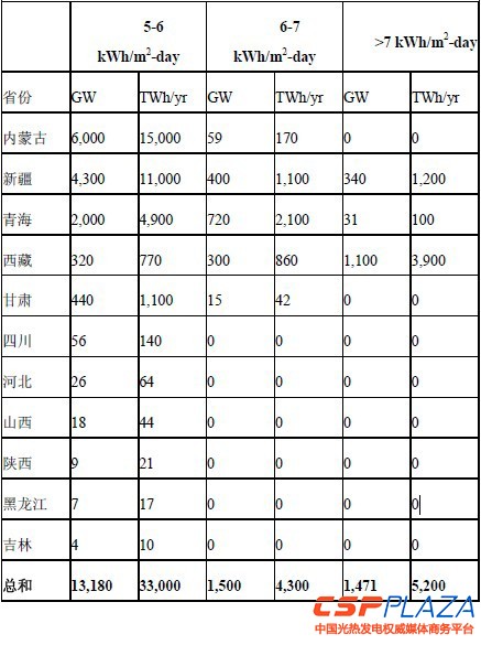 圖:中國各省區(qū)太陽能熱發(fā)電可開發(fā)潛能分布