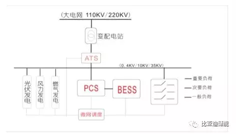 三、電池儲能系統(tǒng)在微電網(wǎng)中的作用至關(guān)重要,在獨立型微電網(wǎng)中,它既要保持微電網(wǎng)電壓和頻率的穩(wěn)定(V/F控制),確保微電源的并網(wǎng)條件,還要提供足夠的能量,保證負荷的供電需求。獨立型微電網(wǎng)一般用柴油發(fā)電機作備電,主電源與備電之間的切換由微電網(wǎng)調(diào)度來控制。對于小型微電網(wǎng),其調(diào)度策略可能會集成在儲能系統(tǒng)PCS內(nèi)。