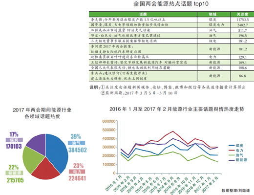 中國儲(chǔ)能網(wǎng)訊:2017年全國兩會(huì)進(jìn)入收官階段,在眾多焦點(diǎn)話題之中,能源行業(yè)的改革與發(fā)展再次成為代表、委員、媒體、公眾關(guān)注的交集。在此背景下,人民網(wǎng)輿情監(jiān)測室通過檢索計(jì)算新聞媒體、論壇、博客、微博和微信渠道傳播量,辨識(shí)出關(guān)注度排名前十的能源領(lǐng)域熱點(diǎn)話題。輿情識(shí)風(fēng)向。這些熱點(diǎn)話題的分布和關(guān)注度差異,從某種程度上映射出我國能源產(chǎn)業(yè)未來前進(jìn)的方向和輿論的期待,值得能源人參閱和思考。本期《中國能源報(bào)》特此重磅推出“全國兩會(huì)能源輿情觀察”,幫助每一位關(guān)注能源行業(yè)的人讀懂讀透兩會(huì)能源熱點(diǎn)。