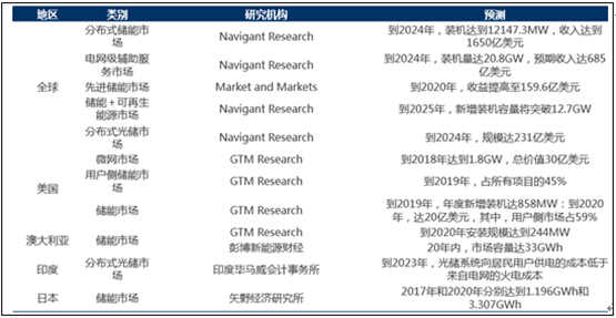表:國(guó)外知名研究公司/機(jī)構(gòu)對(duì)未來儲(chǔ)能市場(chǎng)的預(yù)測(cè)