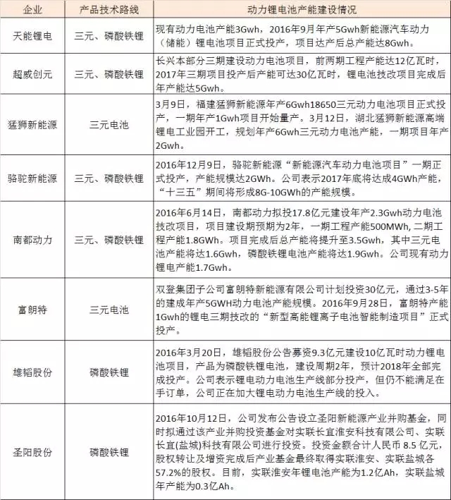 在新能源汽車市場持續(xù)增長影響以及新版動力電池規(guī)范8Gwh產能的要求之下,2016年中國動力電池行業(yè)掀起了大規(guī)模的產能擴充浪潮。其中鉛酸巨頭旗下的主營鋰電的子公司在動力電池產能擴充的力度和速度方面一點也不亞于大型動力電池企業(yè)。