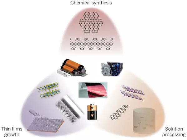在光伏器件、燃料電池、電池、 超級(jí)電容器等中石墨烯的集成,為不斷增加的全球能源驅(qū)動(dòng)的需求設(shè)備提供了機(jī)遇和應(yīng)對(duì)挑戰(zhàn)。石墨烯天然的二維特性具有超高的比表面積,可達(dá)2200m2/g,同時(shí)也兼顧有高導(dǎo)電性和柔性,使石墨烯成為電荷儲(chǔ)存、離子儲(chǔ)存和氫氣儲(chǔ)存的有效材料。其他二維晶體,比如過(guò)渡金屬硫族化合物(TMDs)和過(guò)渡金屬氧化物,也成為能源應(yīng)用很有前景的選擇。使用二維晶體這樣的優(yōu)勢(shì),采用旋凃過(guò)程或者疊層組裝方法,有可能根據(jù)“需求”創(chuàng)造和設(shè)計(jì)出分層人工結(jié)構(gòu)。