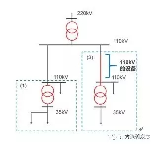 根據(jù)接入公網(wǎng)位置的不同,增量配網(wǎng)可分為兩種類型:一類是接在增量配網(wǎng)的變壓器接線處,另一類接在公網(wǎng)變壓器饋線處,兩種類型地方電網(wǎng)的主要區(qū)別在于主網(wǎng)與配網(wǎng)連接設(shè)備的所有權(quán)不同,如圖1中的(1)和(2),類型(1)中110kV輸電線路及相關(guān)設(shè)備為公共電網(wǎng)所有,類型(2)中 110kV輸電線路及相關(guān)設(shè)備為增量配網(wǎng)所有。按暫行辦法,第(1)類中增量配網(wǎng)專用的110kV接入線路及相關(guān)設(shè)備將由所有公網(wǎng)用戶共同分?jǐn)?,而第?)類增量配網(wǎng)專用的110kV接入線路及相關(guān)設(shè)備將由增量配網(wǎng)用戶分?jǐn)?,顯而易見后者分?jǐn)傇瓌t更為公平。