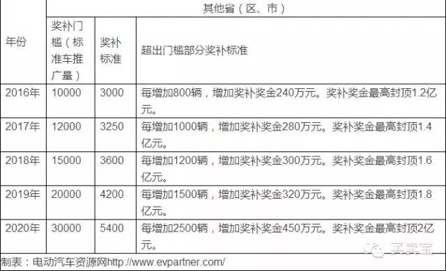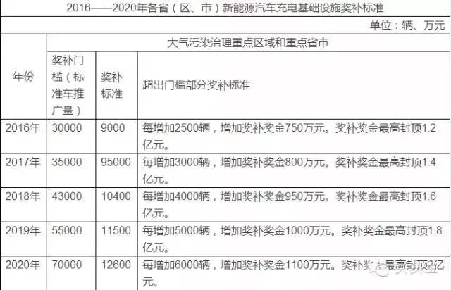 根據(jù)財(cái)政部、工業(yè)和信息化部等部委聯(lián)合發(fā)布的《關(guān)于“十三五”新能源汽車充電基礎(chǔ)設(shè)施獎(jiǎng)勵(lì)政策及加強(qiáng)新能源汽車推廣應(yīng)用的通知》,各省區(qū)市要獲得新能源汽車充電基礎(chǔ)設(shè)施建設(shè)、運(yùn)營(yíng)獎(jiǎng)補(bǔ)資金,需達(dá)到一定的推廣規(guī)模。
