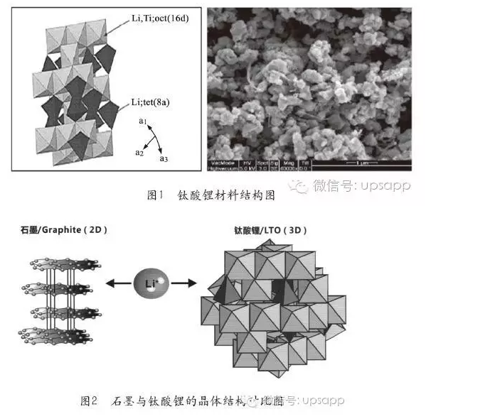 鈦酸鋰材料具有三維擴(kuò)散通道,在Li+脫嵌過程中,其晶格體積基本不發(fā)生形變,其結(jié)構(gòu)為Li+提供了足夠暢通和快速的遷移,鈦酸鋰材料具有三維擴(kuò)散通道,不存在因形變帶來的應(yīng)力應(yīng)變和結(jié)構(gòu)塌陷,從而使鈦酸鋰材料具有更長的循環(huán)壽命。從化學(xué)反應(yīng)特性來看,鈦酸鋰能夠在大倍率下進(jìn)行快速脫嵌鋰過程(既能快充也能快放)。圖1為鈦酸鋰材料結(jié)構(gòu)圖。圖2為石墨與鈦酸鋰的晶體結(jié)構(gòu)對比圖。