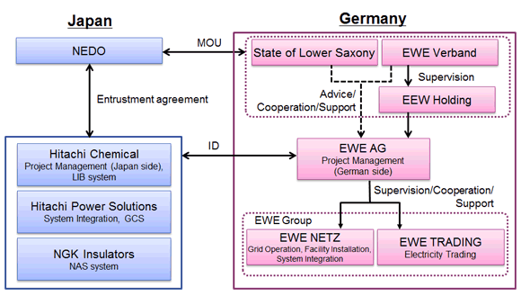 中國儲(chǔ)能網(wǎng)訊:NEDO、德國下薩克森州經(jīng)濟(jì)、勞動(dòng)與運(yùn)輸部、EWE(管理下薩克森州17個(gè)區(qū)、4個(gè)城市的電力供應(yīng))、EEW(EWE的私人有限公司)共同簽署了一份MOU,將在德國下薩克森州聯(lián)合開展大規(guī)?;旌想姵貎?chǔ)能系統(tǒng)示范項(xiàng)目。與此同時(shí),NEDO委任NGK、日立化成和日立電力解決方案有限公司等幾家日本公司具體實(shí)施項(xiàng)目。