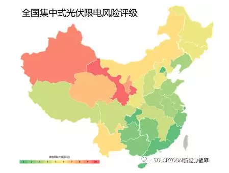 2017版的限電風(fēng)險(xiǎn)地圖中,列示了各省份光伏發(fā)電項(xiàng)目所面臨的限電風(fēng)險(xiǎn),從基本無(wú)限電風(fēng)險(xiǎn)(1級(jí))到嚴(yán)重限電風(fēng)險(xiǎn)(10級(jí))。相比2016版的限電風(fēng)險(xiǎn)評(píng)級(jí)體系,2017版所考量的因素更為全面,尤其增量考慮了風(fēng)光裝機(jī)占比提升動(dòng)量因子對(duì)限電風(fēng)險(xiǎn)爆發(fā)時(shí)間的影響。實(shí)際限電情況、集中式風(fēng)光裝機(jī)占比、限電風(fēng)險(xiǎn)爆發(fā)時(shí)間、風(fēng)光水裝機(jī)占比、能源自給率五大因子,有助于投資商與金融機(jī)構(gòu)在集中式光伏電站投資時(shí)更加準(zhǔn)確的為資產(chǎn)定價(jià)。