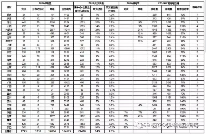 表 1 2016年光伏裝機(jī)容量及2017限電風(fēng)險(xiǎn)評(píng)級(jí)一覽表
