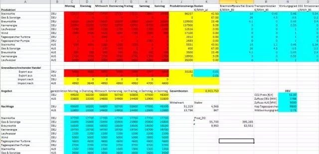 圖中給出了一個(gè)小范圍虛擬電廠資源的優(yōu)化組合,在藍(lán)色區(qū)域發(fā)電邊際成本,各機(jī)組裝機(jī)容量及輸配通道用量已定情況下,優(yōu)化紅色區(qū)域各機(jī)組周一至周日出力及外送情況,并計(jì)算出黃色區(qū)域各類型機(jī)組最優(yōu)發(fā)電量及發(fā)電成本。