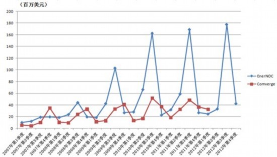 注:Comverge公司由于2012年3月公布了收購消息,所以業(yè)績只公開到2012年第1季度