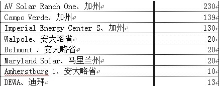 表1: First Solar公司于2012年末開始投入建設(shè)的巨型太陽能項(xiàng)目