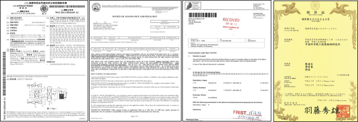 葛洲壩儲能依托中科院工程熱物理研究所研發(fā)團隊,該團隊在先進(jìn)壓縮空氣儲能領(lǐng)域取得了有目共睹的成績。已向PCT、美國、歐盟(37國)、日本等申請了專利,且均已獲得授權(quán),基本完成了對世界主要發(fā)達(dá)國家和地區(qū)的覆蓋國際專利的成功授權(quán),為推進(jìn)專利技術(shù)產(chǎn)業(yè)化和國際化合作奠定了知識產(chǎn)權(quán)的基礎(chǔ),具有極大的促進(jìn)作用。累計申請專利140余項(國際專利7項),申請或授權(quán)專利100余項,已成為國際領(lǐng)先的壓縮空氣儲能研究機構(gòu)。