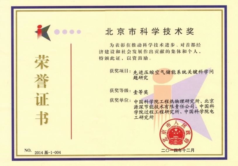 2014年4月,“先進(jìn)壓縮空氣儲能系統(tǒng)理論研究與技術(shù)研發(fā)”通過了科技成果鑒定,鑒定委員會成員一致認(rèn)為:“該項成果是我國壓縮空氣儲能技術(shù)領(lǐng)域的一項重要突破,處于國際領(lǐng)先水平”。