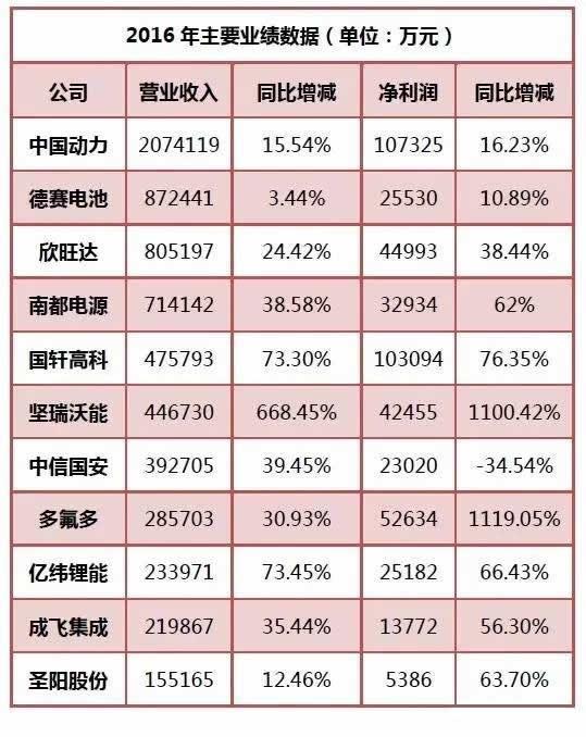 綜合來看,2016年鋰電池上市企業(yè)在營業(yè)收入和凈利潤上普遍實現(xiàn)了兩位數(shù)的增長。