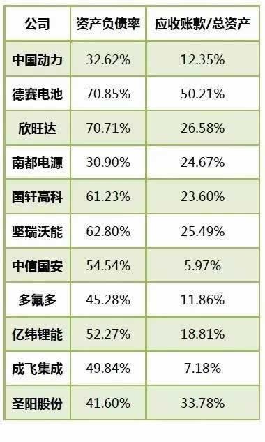 資金風險方面,從資產(chǎn)負債率看,目前11家上市公司資金情況總體良好,但德賽電池和欣旺達負債率偏高,超過了70%。另有企業(yè)在年報中提及應收賬款回收風險,11家公司應收賬款占總資產(chǎn)的比例平均值超過20%,德賽電池這一數(shù)值超過50%。