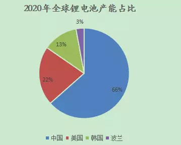 中國鋰離子電池行業(yè)正在占據(jù)世界領(lǐng)先地位。據(jù)倫敦業(yè)界知名研究機(jī)構(gòu)英國基準(zhǔn)礦業(yè)情報估計,至2020年中國約占全球鋰電池62%的產(chǎn)能,而其后依次是美國的22%,韓國的13%以及波蘭的3%。
