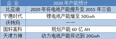 第一階梯動力電池企業(yè)2020年產(chǎn)能規(guī)劃表