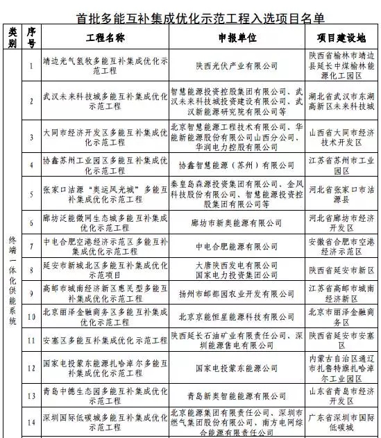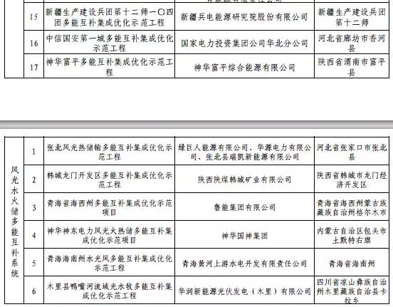 2016年12月國家能源局公布了首批多能互補(bǔ)集成優(yōu)化示范工程入選項目名單