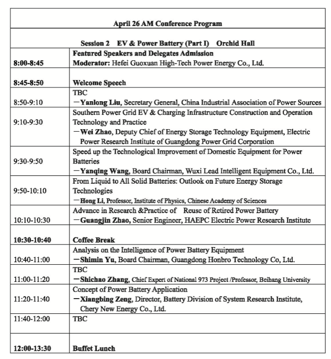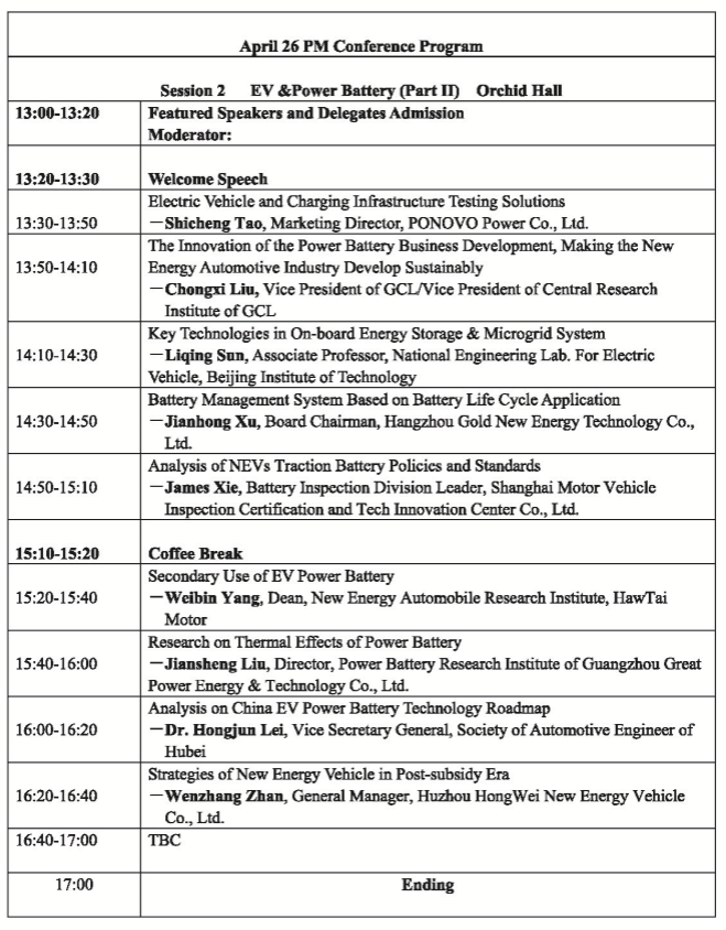 以下為電動(dòng)汽車暨動(dòng)力電池專場(chǎng)具體議程安排。