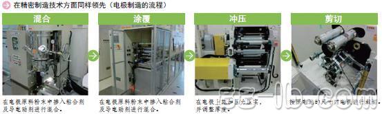 并且,電極是將原料粉末與用來粘合粉末的粘合劑化學(xué)品進(jìn)行混合,涂覆在集電體(鋁箔及銅箔)上制造而成。鋰離子電池所用的粘合劑需要與電極原料粉末之間具有微妙的兼容性,吳羽公司(KUREHA)及日本瑞翁公司(Zeon)等日本化工企業(yè)幾乎壟斷了其生產(chǎn)。