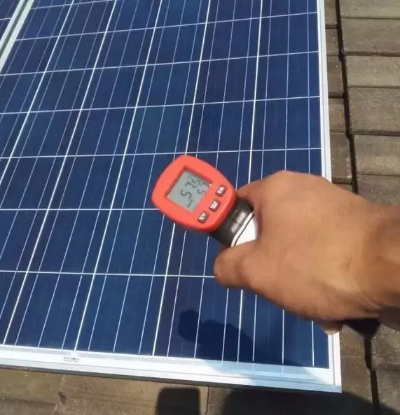 2016年7月24日,亞坦能源的工程師們測試了一組數(shù)據(jù)。上海的氣溫高達(dá)40℃時,光伏組件表面的溫度為57.5℃,背板溫度達(dá)到63℃(由于不方便拍照,所以沒有圖片記錄)。