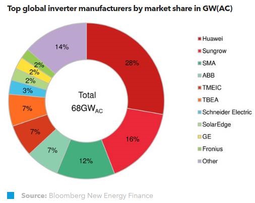 ·組串式逆變器的全球銷量(MW)高于中央逆變器。2016年,華為就僅生產(chǎn)組串式一種逆變器,但陽光電源、TMEIC、SMA、ABB、通用電氣(General Electric)等廠商仍在繼續(xù)出售中央逆變器,而且ABB公司還在擴大中央逆變器工廠的產(chǎn)能。