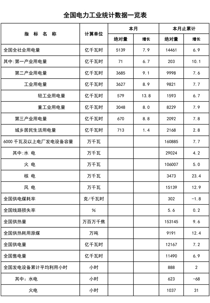 附:全國(guó)電力工業(yè)統(tǒng)計(jì)數(shù)據(jù)