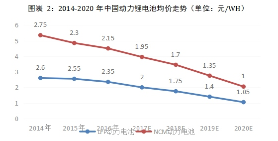 該機(jī)構(gòu)研究總監(jiān)郭斌指出,二季度電池價(jià)格將趨于穩(wěn)定,到年底價(jià)格將降至1.7元/WH左右。預(yù)計(jì)到2020年,中國(guó)動(dòng)力鋰電池價(jià)格將降至1元/WH左右,主要由于電池能量密度提高和各項(xiàng)成本降低等。
