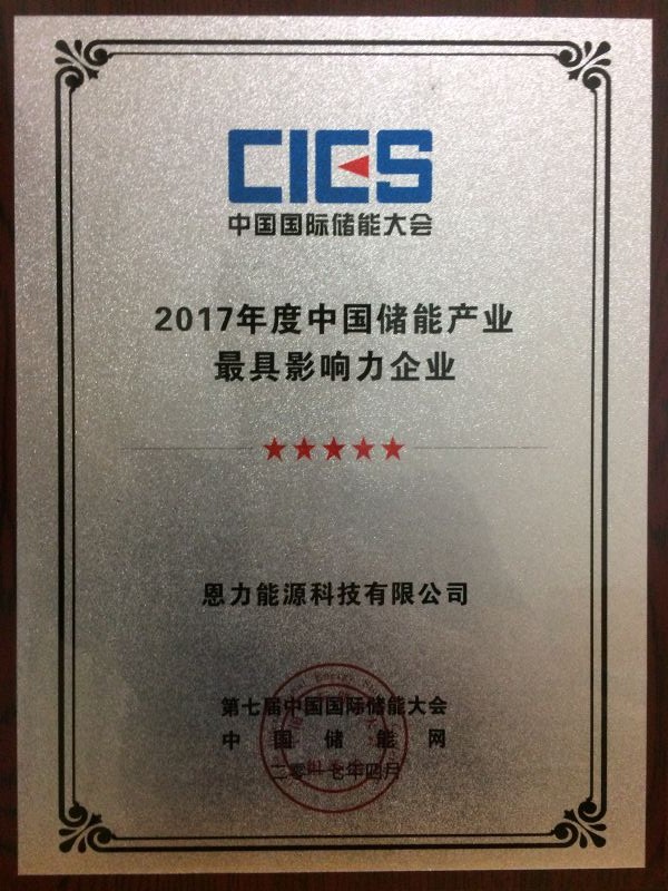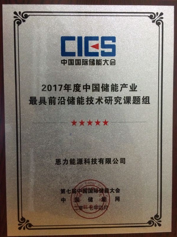 本次大會上,恩力能源作為世界領先、國內唯一的水系離子電池研發(fā)生產企業(yè),憑借在儲能領域的自主研發(fā)實力、前沿科技團隊和綜合競爭力,成功榮獲“2017年度中國儲能產業(yè)最具影響力企業(yè)”及“2017年度中國儲能產業(yè)最具前沿儲能技術研究課題組”兩項大獎。