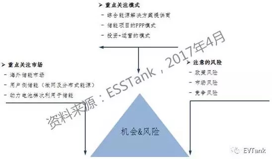 關(guān)于儲(chǔ)能產(chǎn)業(yè)的投資機(jī)會(huì),ESSTank分析認(rèn)為,雖然目前處于示范階段,但是對于企業(yè)布局來講正當(dāng)時(shí),ESSTank建議企業(yè)關(guān)注海外儲(chǔ)能市場、微網(wǎng)及分布式能源為代表的用戶側(cè)儲(chǔ)能市場以及動(dòng)力電池的梯次利用等環(huán)節(jié)。另外,在商業(yè)模式上,ESSTank建議關(guān)注綜合能源解決方案模式、儲(chǔ)能項(xiàng)目PPP模式以及以“投資+運(yùn)營”的模式。