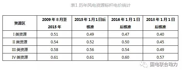 2009年7月國家發(fā)改委發(fā)布《關(guān)于完善風(fēng)力發(fā)電上網(wǎng)電價政策的通知》,在特許權(quán)招標(biāo)的基礎(chǔ)上實行標(biāo)桿上網(wǎng)電價政策。并根據(jù)規(guī)?;l(fā)展需要,要求制定實施可再生能源發(fā)電全額保障性收購制度,以應(yīng)對大規(guī)模風(fēng)電上網(wǎng)和市場消納的挑戰(zhàn)。截至2016年12月,標(biāo)桿上網(wǎng)電價共進(jìn)行了4次價格調(diào)整,詳見表1。