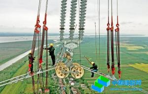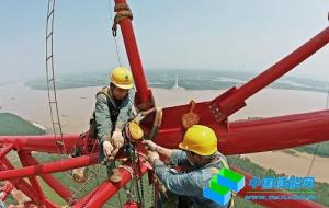 施工人員在新吉陽長江大跨越進(jìn)行附件安裝。