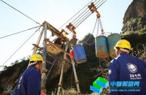 錦蘇特高壓工程在無人區(qū)施工過程中,工作人員通過索道運送生產(chǎn)物資。