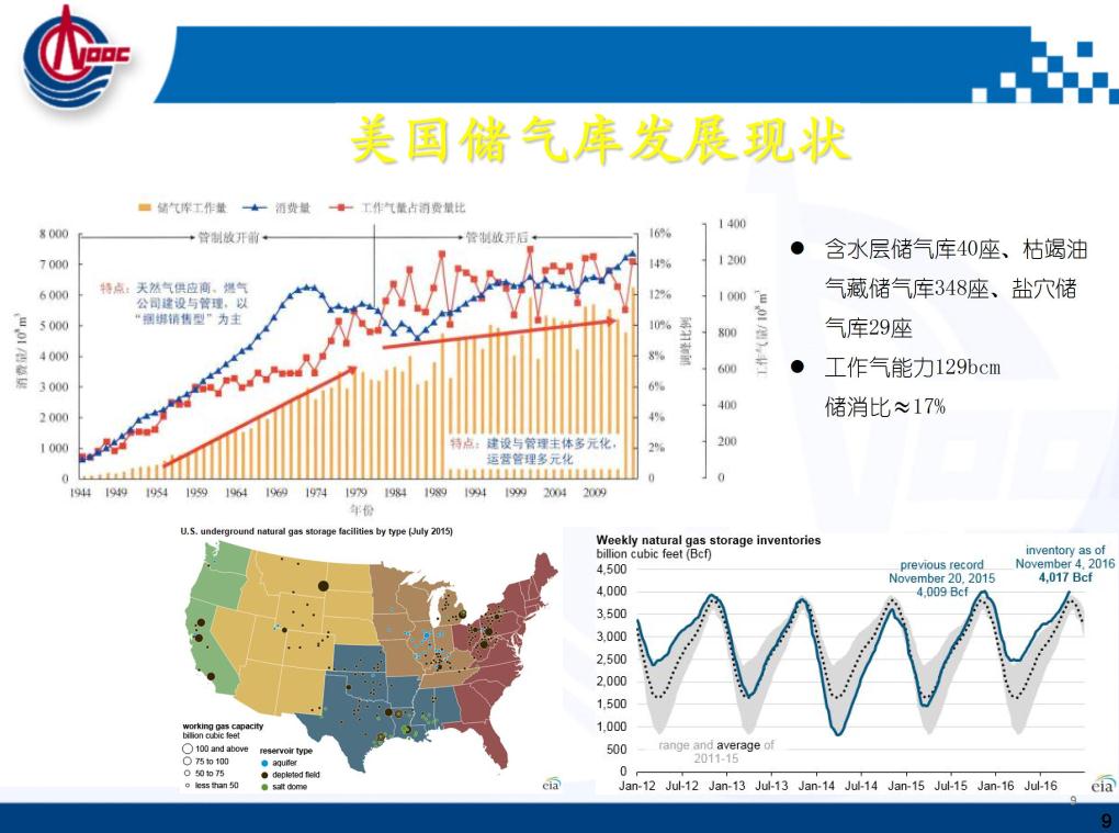 這是歐洲儲氣庫的運行特性,冬天滿足采暖,整個歐洲靠天然氣,雖然歐洲的可再生能源發(fā)展很好,但是它的調(diào)峰目前還是以天然氣為主。這是它的運行機制,包括歐洲和美國的天然氣價格是放開的,求大于供就漲價了,供大于求就降價了。便宜的時候美國四五毛錢一方氣,用不了就存起來,到了冬天天氣很冷的時候,賣到三四塊錢完全有可能,這套體系儲氣庫和管道,包括電網(wǎng)都可以實現(xiàn)盈利,但是價格要放開。這是其他國家的一些海上儲氣庫,因為我們海油主要是從海上的老氣田轉(zhuǎn)儲氣庫?,F(xiàn)在的管道都聯(lián)同了,可以互相互聯(lián)相互串氣。到了冬天如果華北、東北、西北需要采暖的時候,我們和他簽增量合同,完全可以解決。
