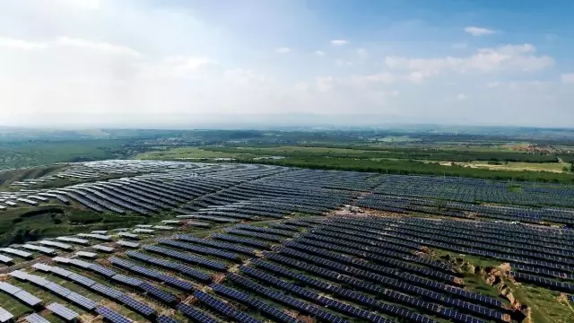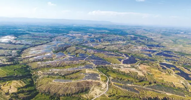 汽車駛過大同左云縣曹家溝附近的大片大片綿延的山丘,沿線那些曾經(jīng)采空沉陷的荒山荒坡如今已被太陽能光伏板覆蓋。一路前行,一塊塊太陽能電池板整齊排列,在朝陽的映射下熠熠生輝;一座座模塊化預(yù)制艙式變電站矗立在光伏陣列中,通過條條“銀線”將可再生能源輸送到遠(yuǎn)方。
