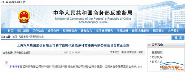 中國儲能網(wǎng)訊:近日,電動汽車時代從商務(wù)部反壟斷局官網(wǎng)公示的經(jīng)營者集中簡易案件獲悉:上海汽車集團股份有限公司(“ 上汽集團”)擬通過其全資子公司上海汽車集團投資管理有限公司(“上汽管理”)與寧德時代新能源科技股份有限公司(“寧德時代”)新設(shè)兩家合營企業(yè),分別為時代上汽動力電池有限公司與上汽時代動力電池系統(tǒng)有限公司。
