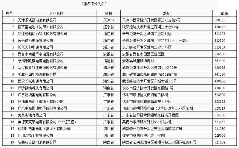 中國儲能網(wǎng)訊:為推動我國鉛蓄電池行業(yè)可持續(xù)發(fā)展,依據(jù)《鉛蓄電池行業(yè)規(guī)范條件(2015年本)》及《鉛蓄電池行業(yè)規(guī)范公告管理辦法(2015年本)》,工業(yè)和信息化部開展鉛蓄電池行業(yè)規(guī)范管理工作。經(jīng)企業(yè)申請、省級工業(yè)和信息化主管部門初審、專家審核、工業(yè)和信息化部復(fù)核以及網(wǎng)上公示等程序,天津湯淺蓄電池有限公司等19家企業(yè)列入《符合<鉛蓄電池行業(yè)規(guī)范條件(2015年本)>企業(yè)名單(第三批)》,現(xiàn)予以公告。
