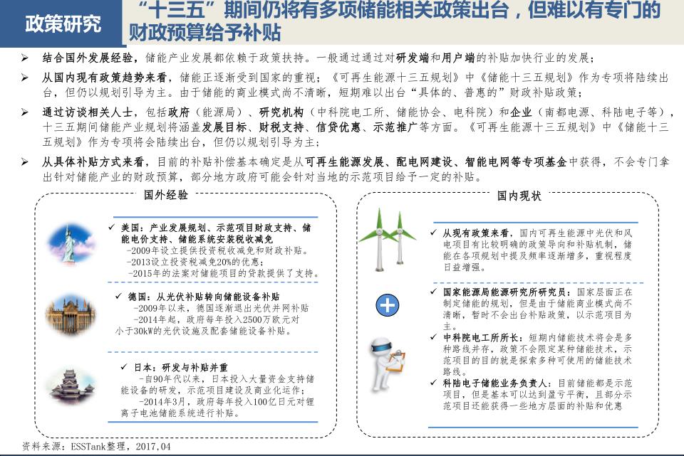 做個總結(jié):十三五期間還會有很多關(guān)于儲能產(chǎn)業(yè)的政策出臺,但是專門拿財政來給儲能做補(bǔ)貼的可能性,個人覺得還是比較小的。部分地方政府可能會給某些項目一些當(dāng)?shù)氐难a(bǔ)貼,一事一議?,F(xiàn)在很多企業(yè)在地方上做一些示范項目,我們認(rèn)為可能也是在當(dāng)?shù)赝ㄟ^各種方式,拿到了一些優(yōu)惠或者支持的政策。