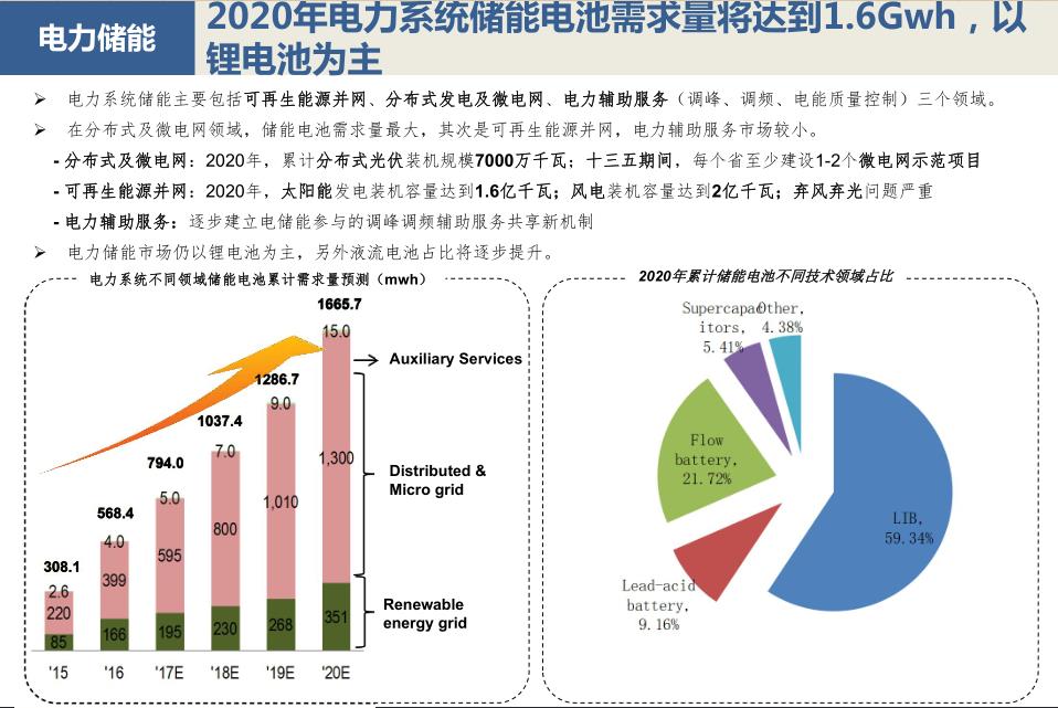 通過儲能電池的需求量,我們做了一個預(yù)測,2020年整個用于電力儲能的電池需求大概是1.6GWh,但是這個增速也不是很高,我們看對電動汽車的預(yù)測,2020年大概要做到超過100GWh,這里面也就1%左右。所以我們認(rèn)為,這個市場在2020年之前還是一個示范性的市場。