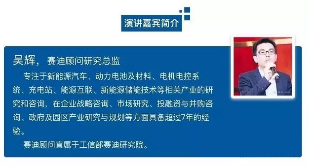 吳輝:各位朋友,大家上午好!非常高興有這樣一個機(jī)會,來跟大家分享賽迪顧問在中國儲能市場的一些研究。由于今天是投融資的專場,站在產(chǎn)業(yè)的角度來看一下我們這個行業(yè)在未來存在的一些投資機(jī)會。其實,剛才,劉秘書長(編者注:中國化學(xué)與物理電源行業(yè)協(xié)會儲能應(yīng)用分會秘書長劉勇先生)已經(jīng)把整個儲能產(chǎn)業(yè)的一些政策與技術(shù)路線,跟大家做了交流。接下來,我將從市場的角度,來跟大家分析梳理一下整個行業(yè),以及在我們看來,儲能產(chǎn)業(yè)未來的投資機(jī)會到底在哪里?