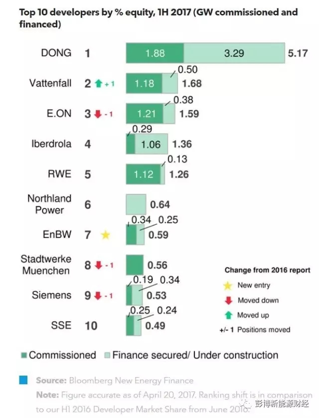 與2016年下半年相比,EnBW成功取代挪威國(guó)家石油公司(Statoil),擠入前10(具體排名第7)。
