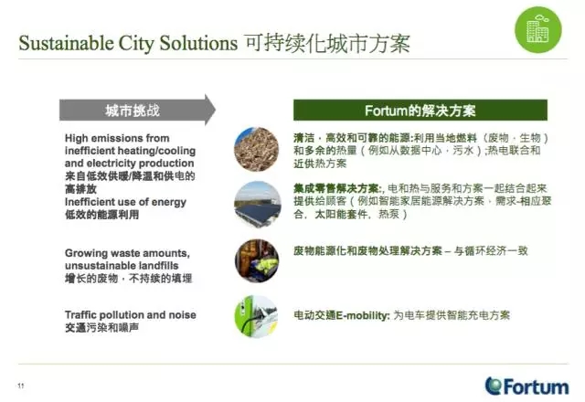 來(lái)自芬蘭的Fortum能源公司(富騰公司)介紹了他們的能源業(yè)務(wù)。2015年富騰公司銷售額34.59億歐元,其業(yè)務(wù)不僅在芬蘭,還涉及波羅地海各國(guó),以及俄羅斯等國(guó)。這家公司以前的主營(yíng)業(yè)務(wù)是發(fā)電,核電和水電?,F(xiàn)在,他們宣稱是一家清潔能源公司,為客戶提供電力,供熱和供冷,以及提高能源效率的智能解決方案。