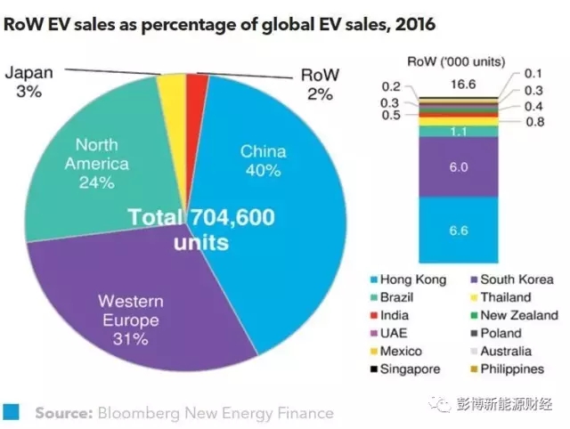 2016年,除了4大市場之外,全球其他地區(qū)的電動汽車總銷量