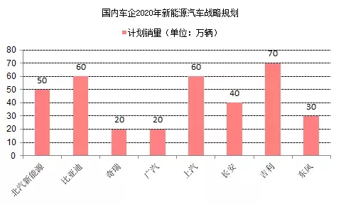 國(guó)內(nèi)方面:呈現(xiàn)群雄逐鹿的格局,其中北汽、比亞迪、上汽、吉利新能源汽車2020年規(guī)劃銷量均突破50萬(wàn)輛,國(guó)內(nèi)主流廠商整體銷量預(yù)計(jì)突破300萬(wàn)輛。
