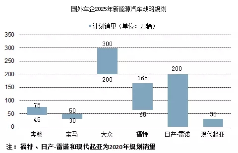 國(guó)外方面:主要車企紛紛發(fā)布新能源汽車2025生產(chǎn)計(jì)劃,實(shí)現(xiàn)新能源汽車銷售占總銷售的二至三成,國(guó)外車企合計(jì)將達(dá)到570-820萬(wàn)輛。