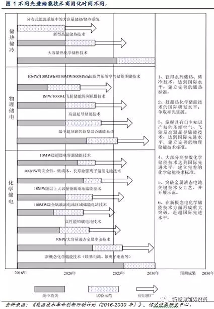 從技術(shù)的角度看,《能源技術(shù)革命創(chuàng)新行動(dòng)計(jì)劃(2016-2030年)》對不同的儲(chǔ)能技術(shù)在近、中、遠(yuǎn)期分別制定了不同的目標(biāo),可以看做是對儲(chǔ)能技術(shù)的戰(zhàn)略指導(dǎo)方向,但是文件針對的是先進(jìn)儲(chǔ)能技術(shù),從規(guī)劃的時(shí)間看,即使是發(fā)展進(jìn)度最快的分布式能源系統(tǒng)中的大容量儲(chǔ)熱/儲(chǔ)冷系統(tǒng)也要在2020年商業(yè)化推廣,而在此期間,對現(xiàn)有的儲(chǔ)能技術(shù)如何進(jìn)行支持則并沒有提及。