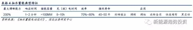 抽水蓄能的特點(diǎn)主要表現(xiàn)為儲(chǔ)能容量大(百兆瓦起步),響應(yīng)時(shí)間相對燃?xì)鈾C(jī)組及火電機(jī)組要短,充放電時(shí)間長,循環(huán)壽命是所有儲(chǔ)能技術(shù)中最長的,因此可以用于能量時(shí)移、調(diào)頻、調(diào)相、黑啟動(dòng)等。